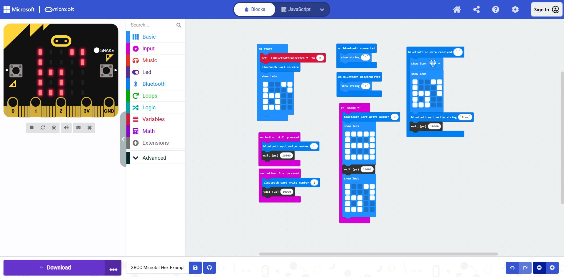- When Microbit Button A is pressed -> Receive “1” in XRCC