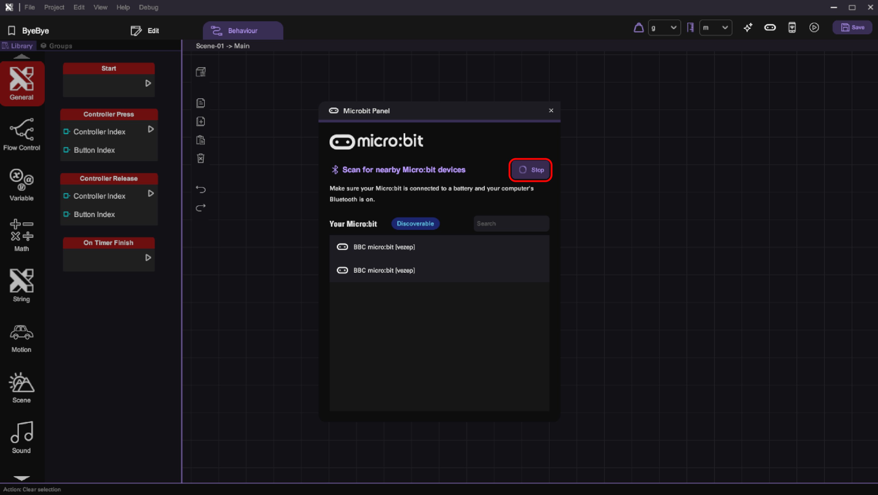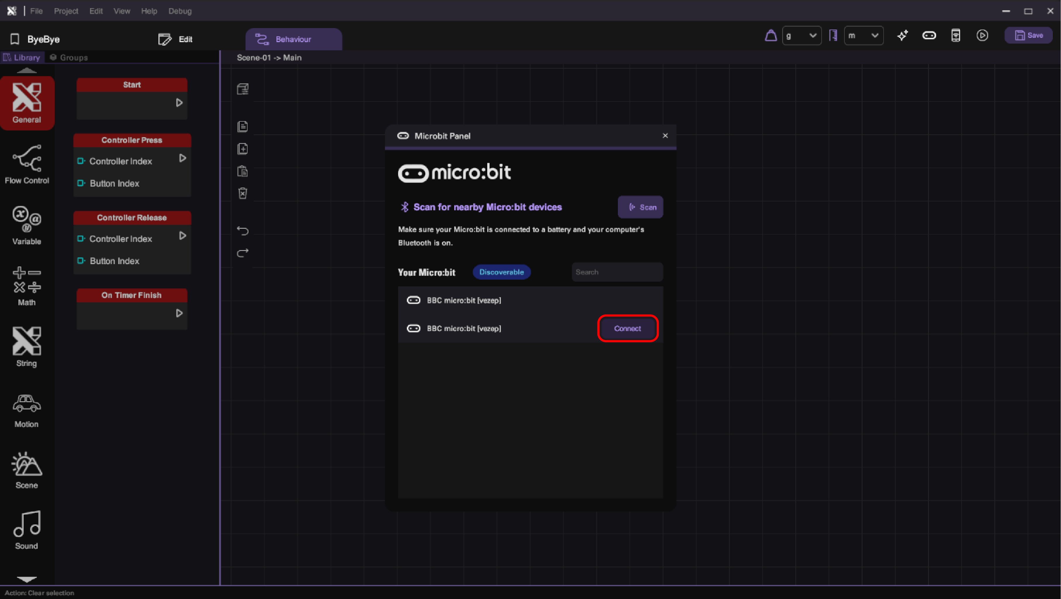 - Connect the Microbit successfully in microbit panel. XRCC will save the last connected device and connect it in Play Mode.