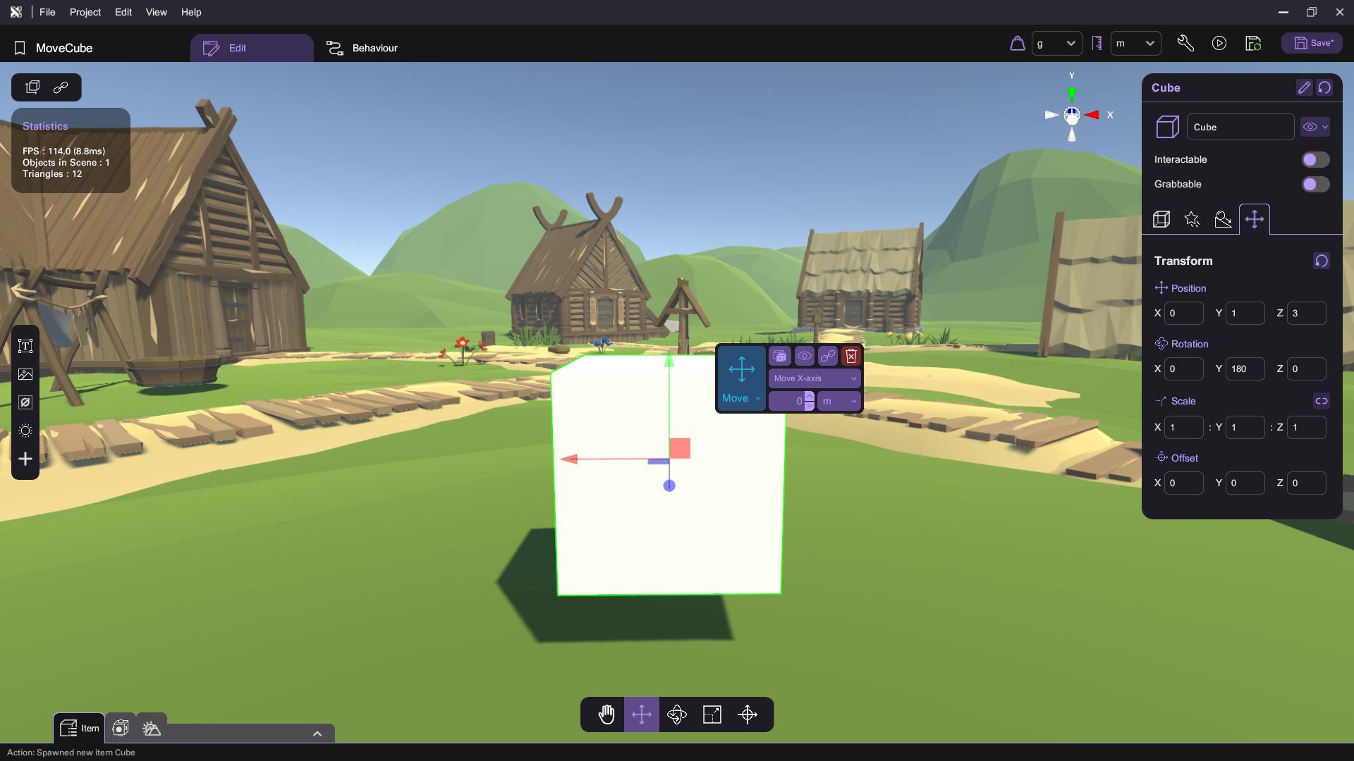 In XRCC, create a new project and add a cube to the scene, then select the cube