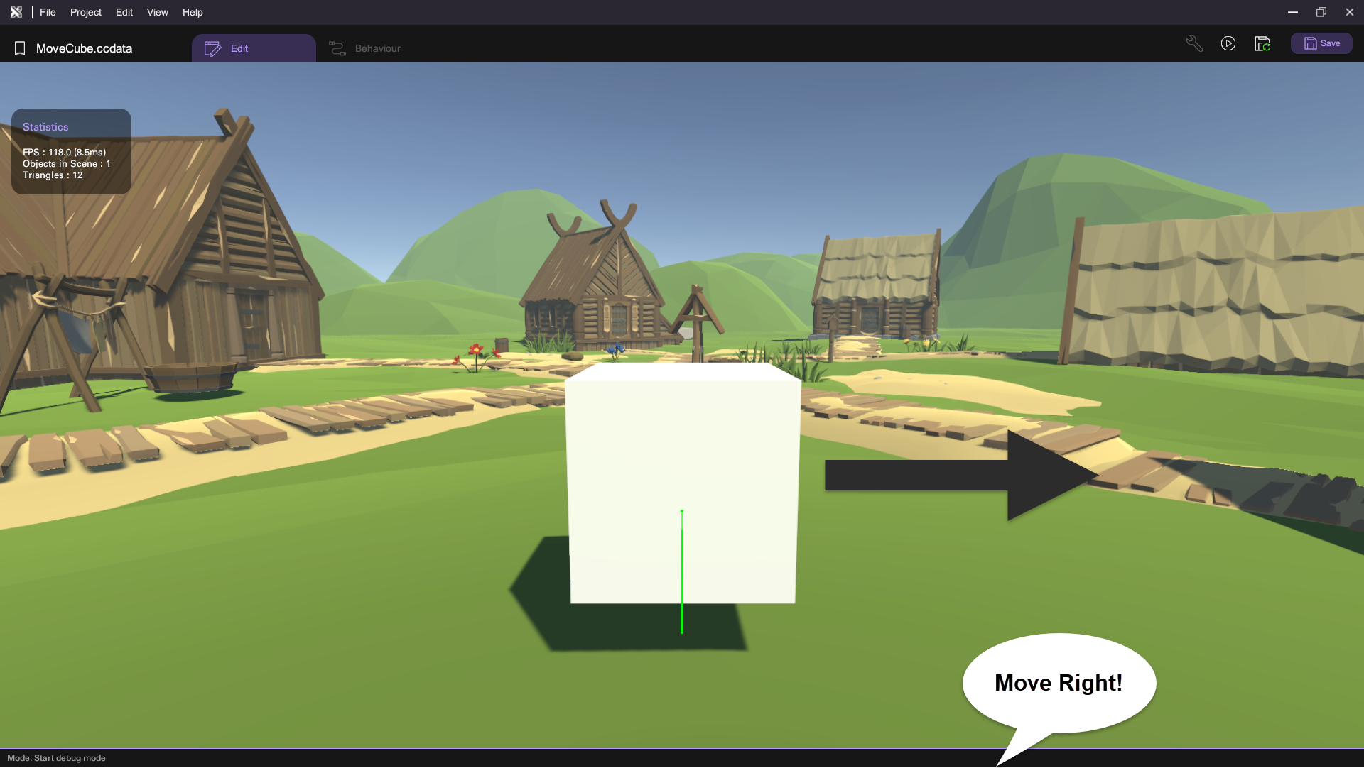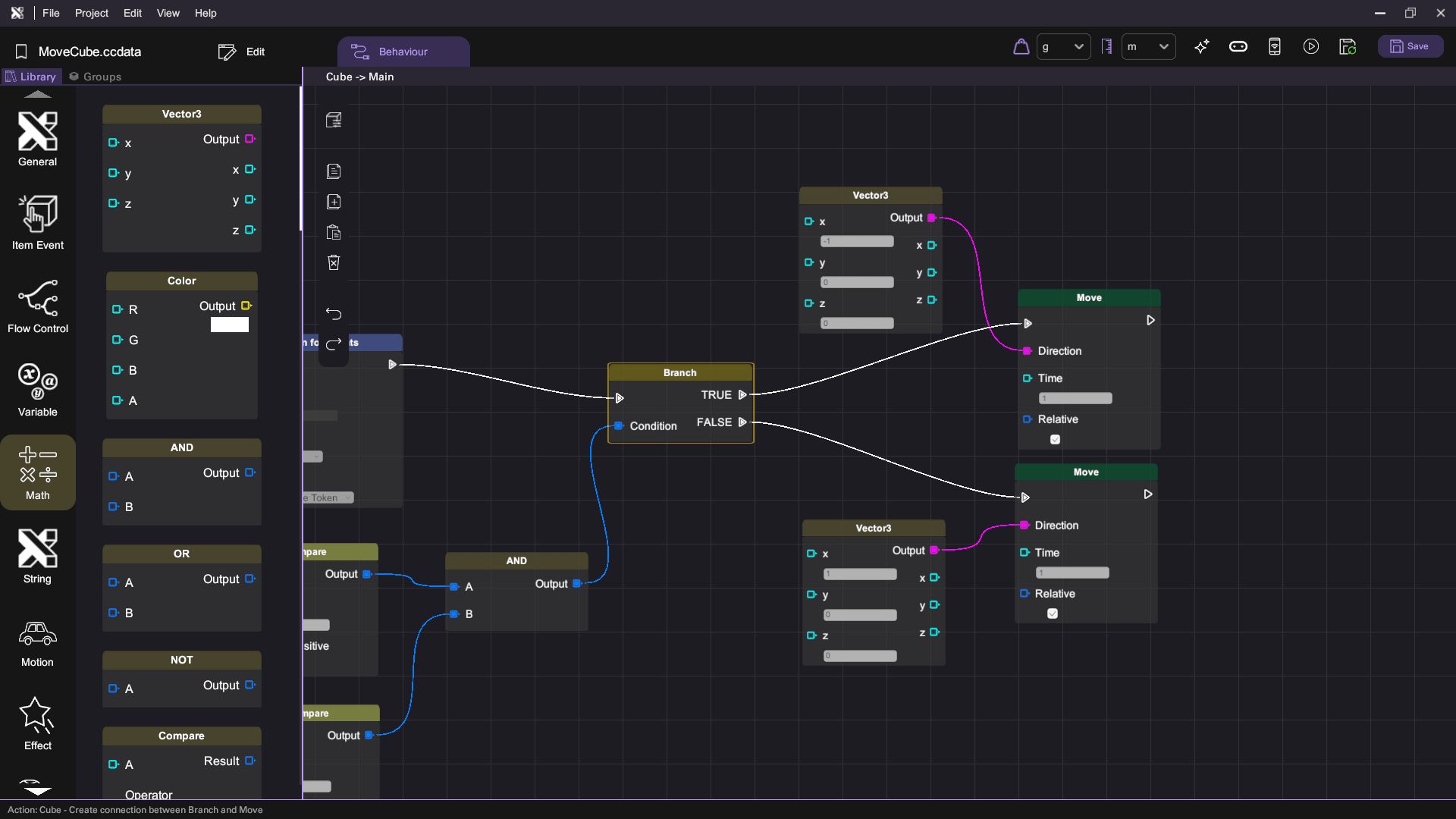 - If the condition is met, move the cube 1 meter to the right; otherwise, move it 1 meter to the left.