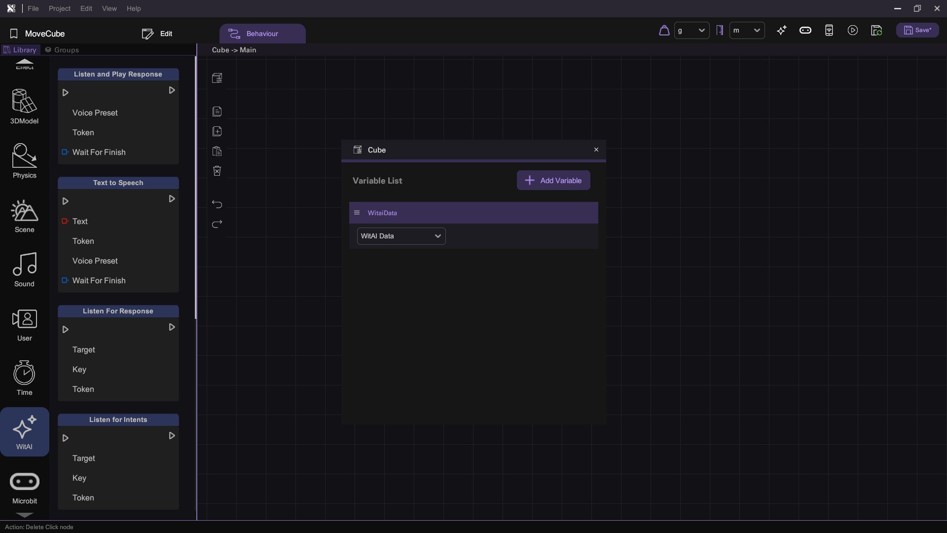 - Add a new WitAI Data variable named "WitaiData"