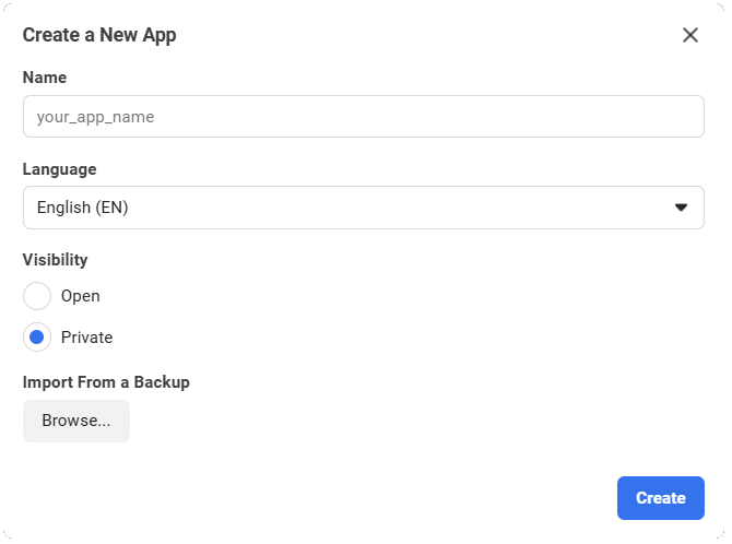 Click the New App button on the Welcome to Wit.ai page. Creating a new app is very simple: you just need to name your app, and choose a language. Then click Create.
