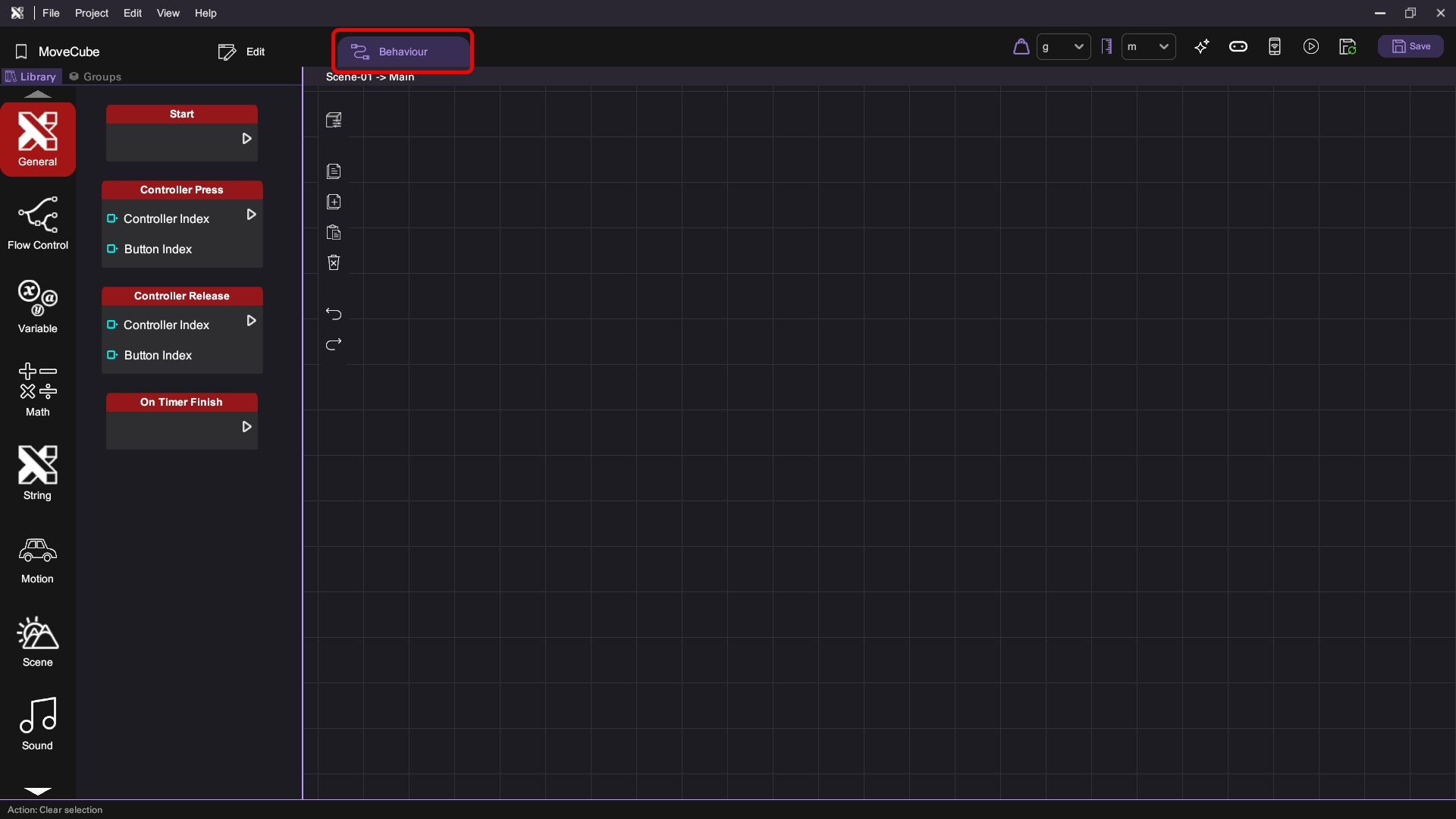 - Open a XRCC project and go to behaviour Panel