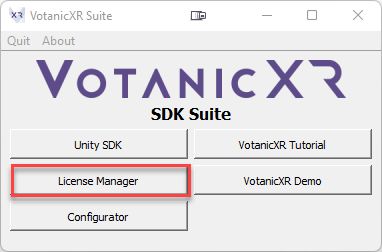 - Open the VotanicXR Suite and select the "License Manager" button to launch the License Manager