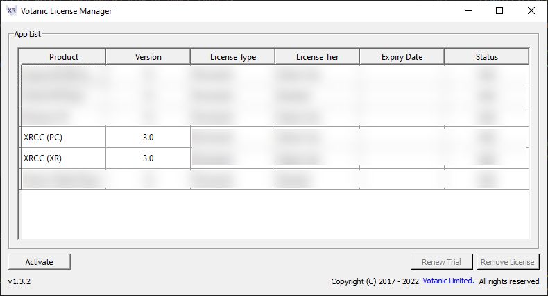 - After activation, you will see XRCC (PC) or XRCC (XR) show up in the License Manager's App List.