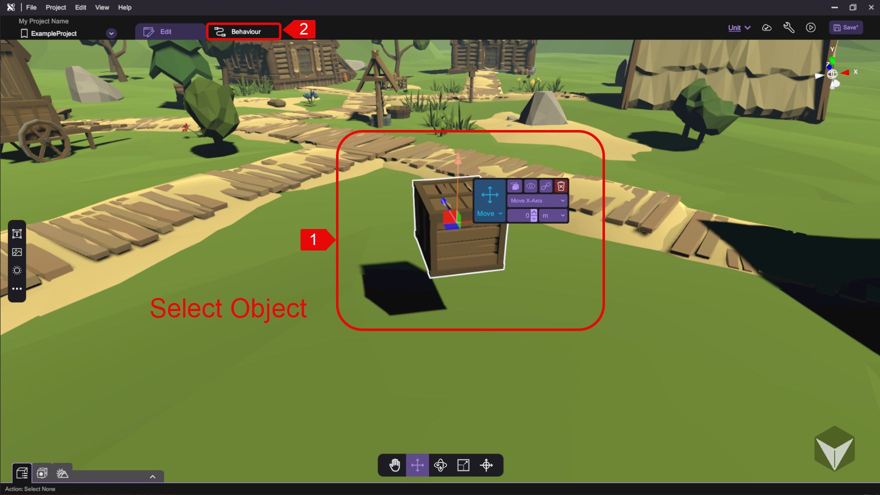 You can create and view behaviour by first select an object in the Scene View, then switch to the Behaviour tab to add or view behaviour for the selected object.