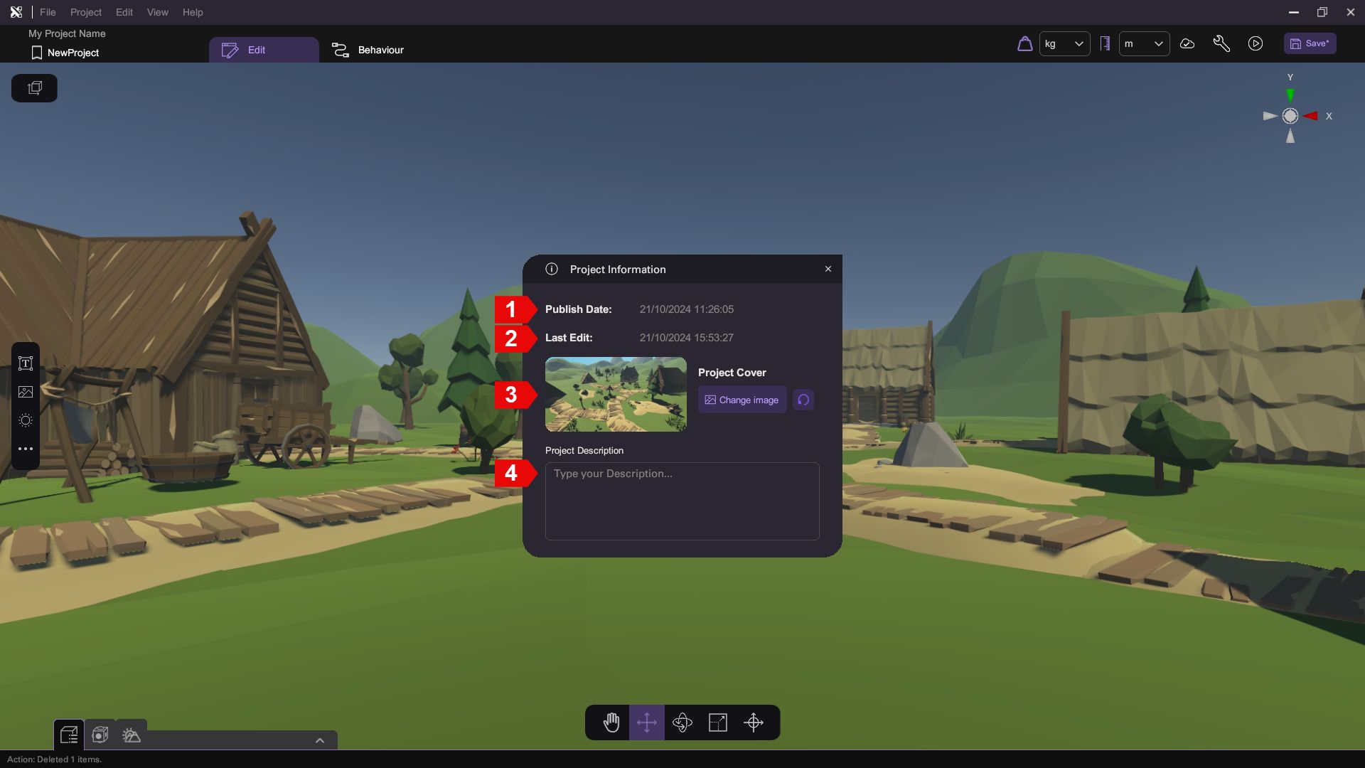 To access the Project Information Panel, navigate to "Project -> Project Information" from the Main Menu. This panel allows you to view detailed project information and modify the project cover image and descriptions.