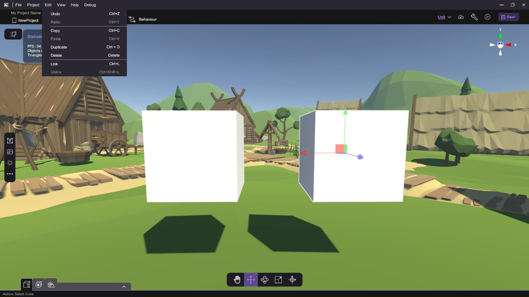 | 2 | A dashed line will extend from the object to the cursor. Select an object that will become the parent object to finish the parenting process. After linking, user can view the relationship between the objects at Item Menu. | ![]() |