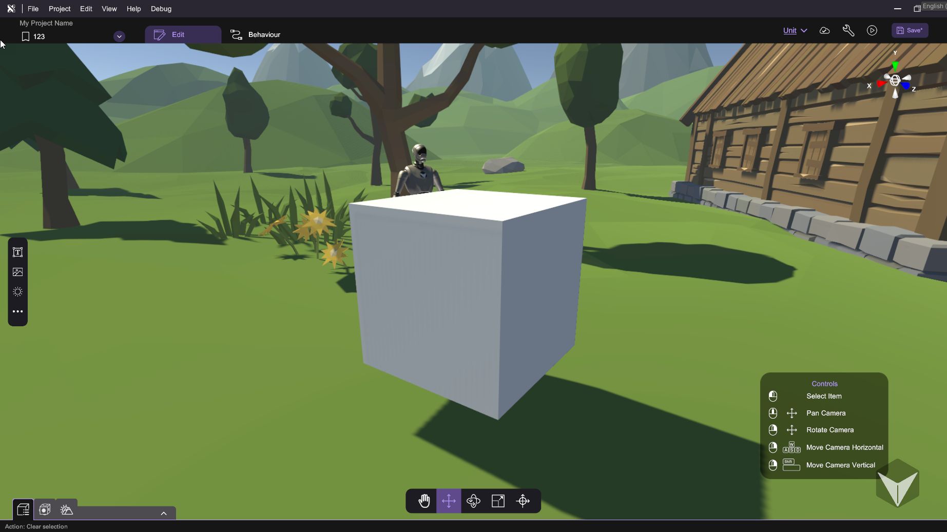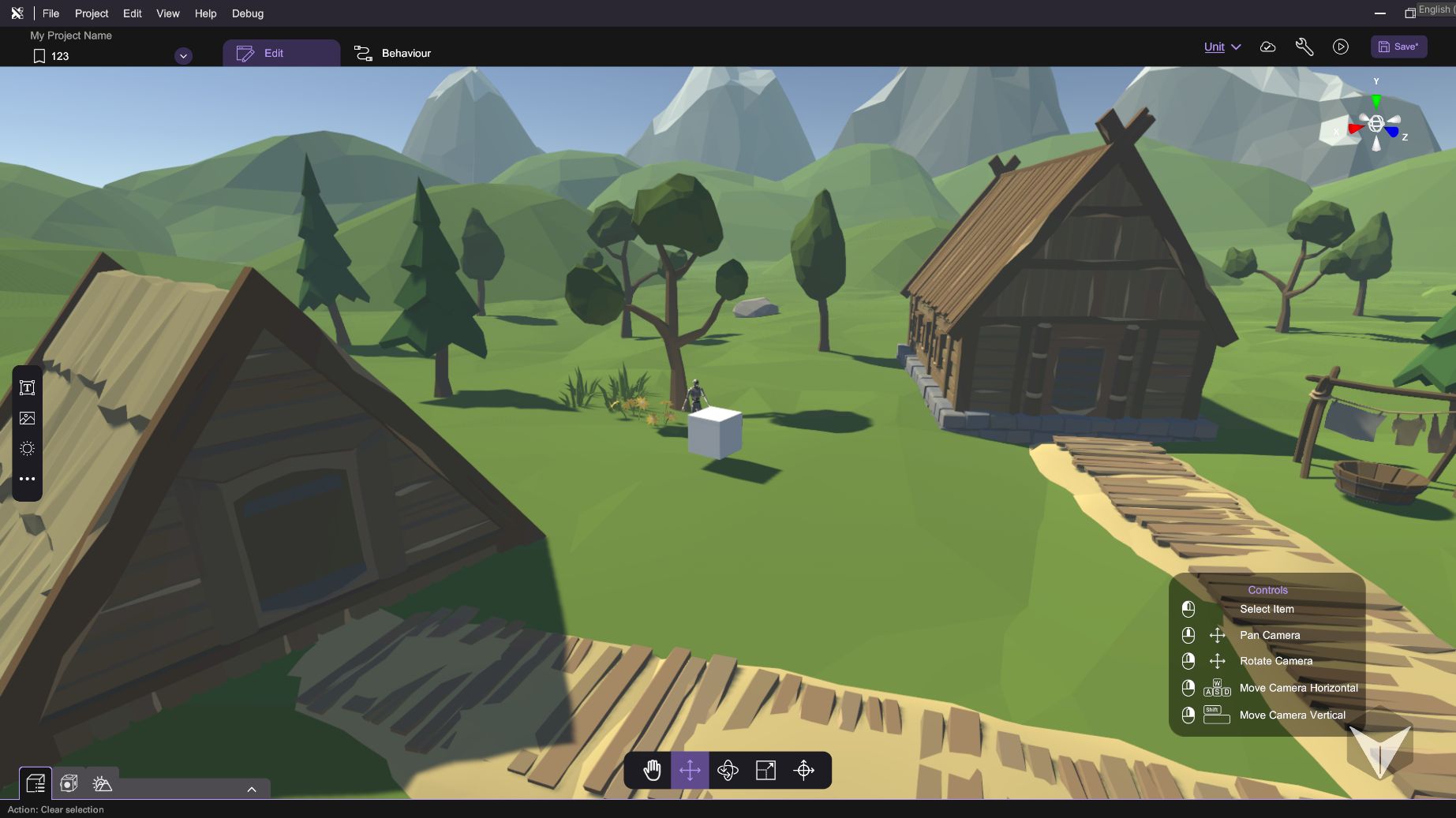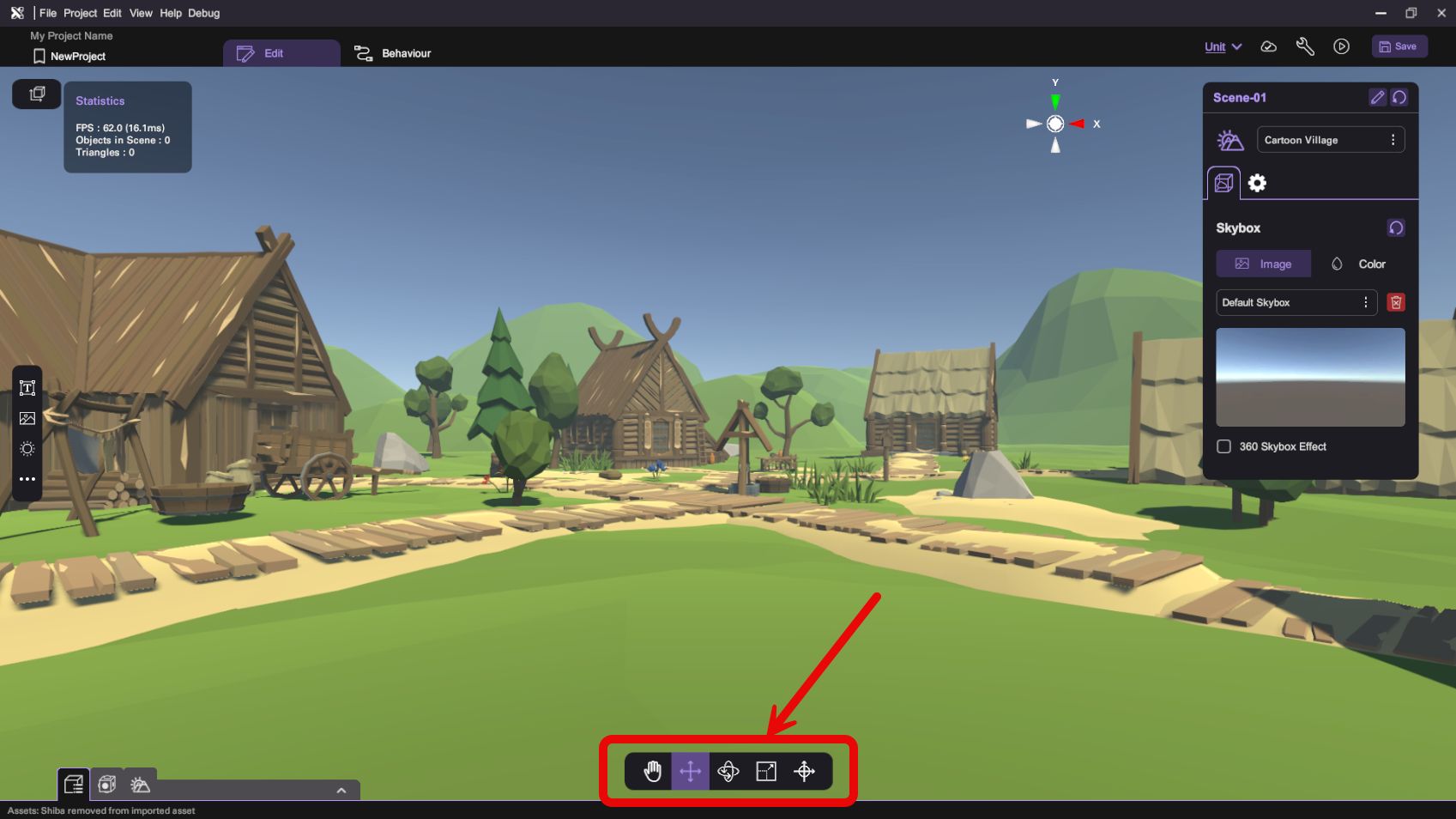 To select multiple objects at once, first switch to any object transform tool other than the Hand Tool, click and drag on the scene to create a rectangle region and release to select all objects inside the region. Alternatively, you can also hold Ctrl and click on the objects one by one to select multiple objects. If an object is already selected, hold Ctrl and click on it to de-select the object.