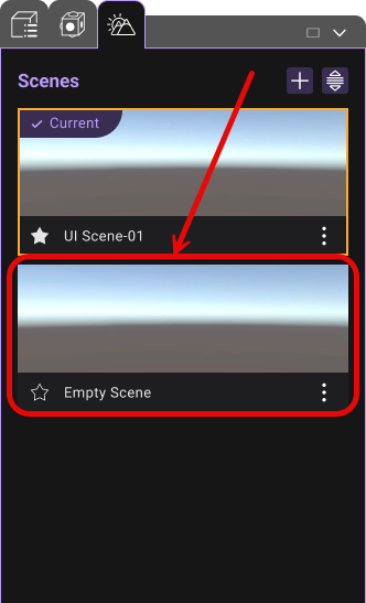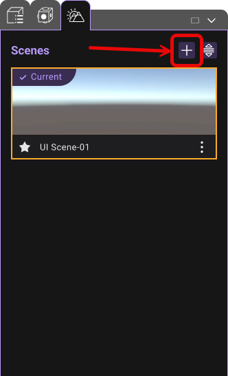 You may add scenes from the Scene Menu by pressing "Add New Scene ()" at the top-right corner.