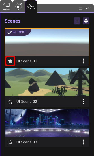 You can click the "Set Start Scene" button () to designate the selected scene as the starting scene. This scene will be loaded first when you open the project.
