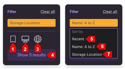 | 7 | Sort results by storage location |