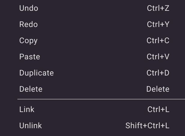 | Paste | Paste the last copied object(s). |