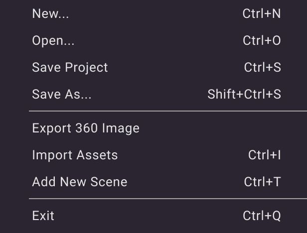 | Add New Scene | Add a new scene to currect project. |