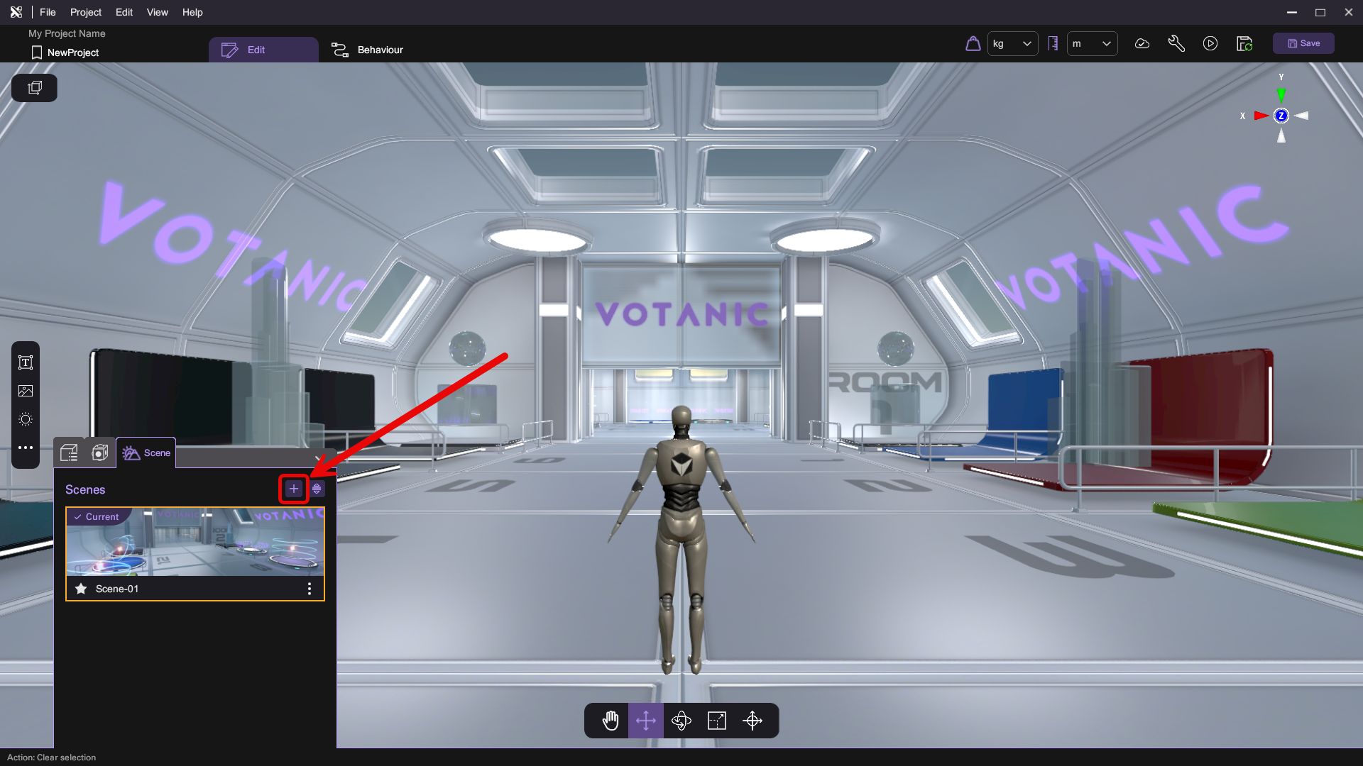 You may add scenes from the Scene Menu by pressing "Add New Scene" () in the "Scene Menu" at the bottom-left corner.
