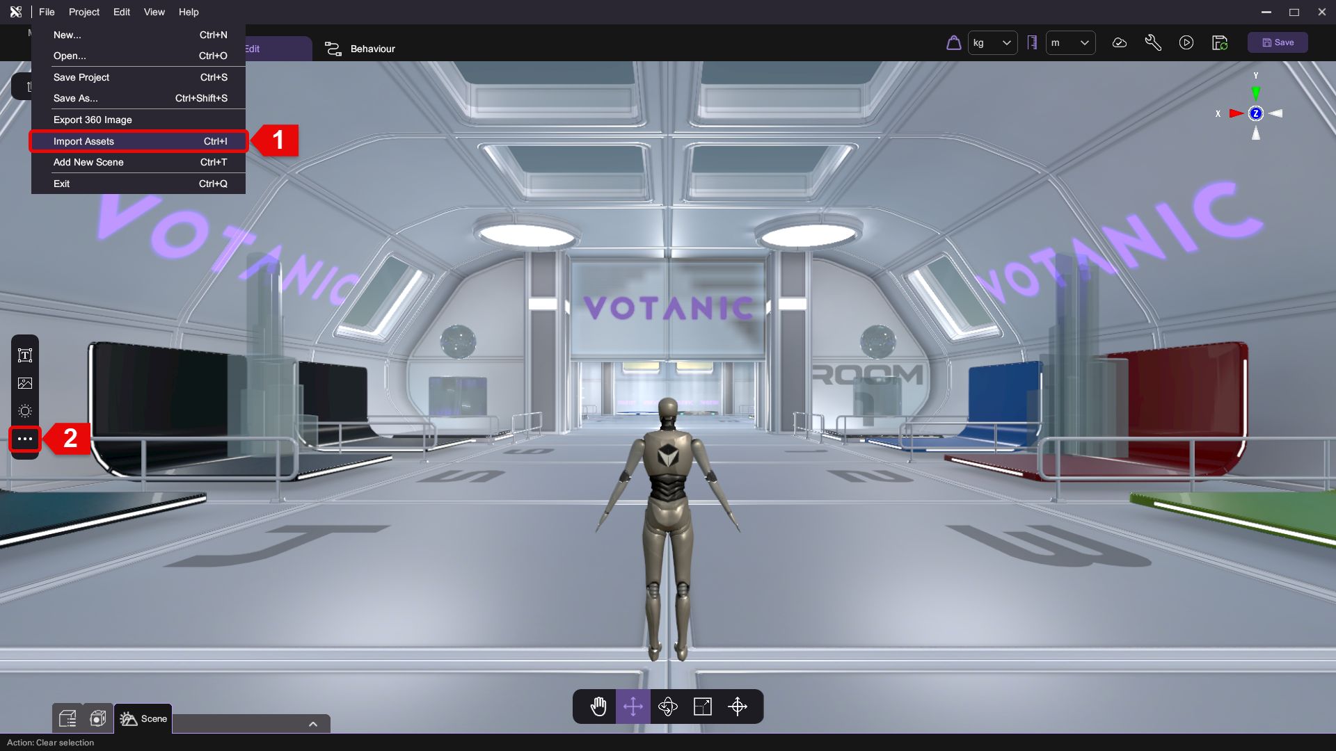 Assets are resources useful in constructing the scenes in a project. In XRCC, assets exist in two different forms: the pre-packaged assets that can be shared among different projects, and the project-specific assets imported and managed by the user.