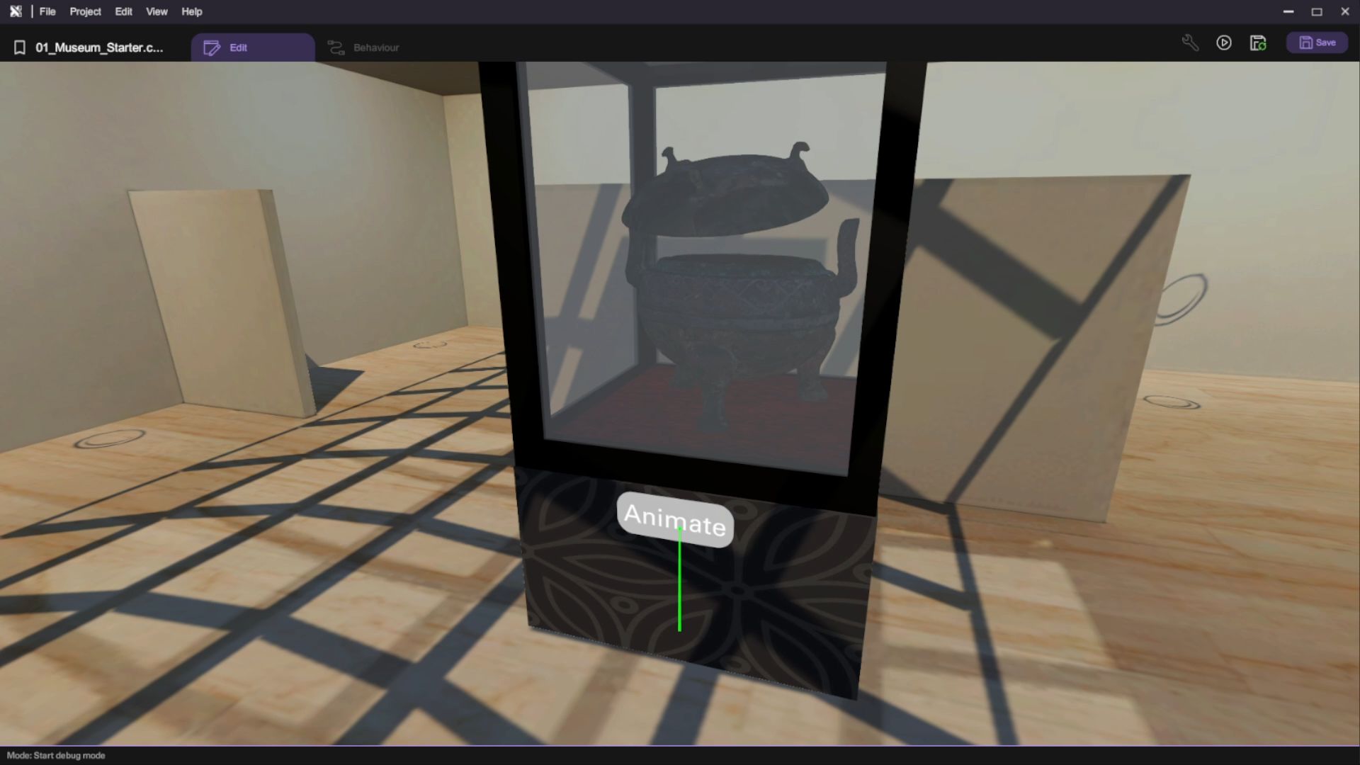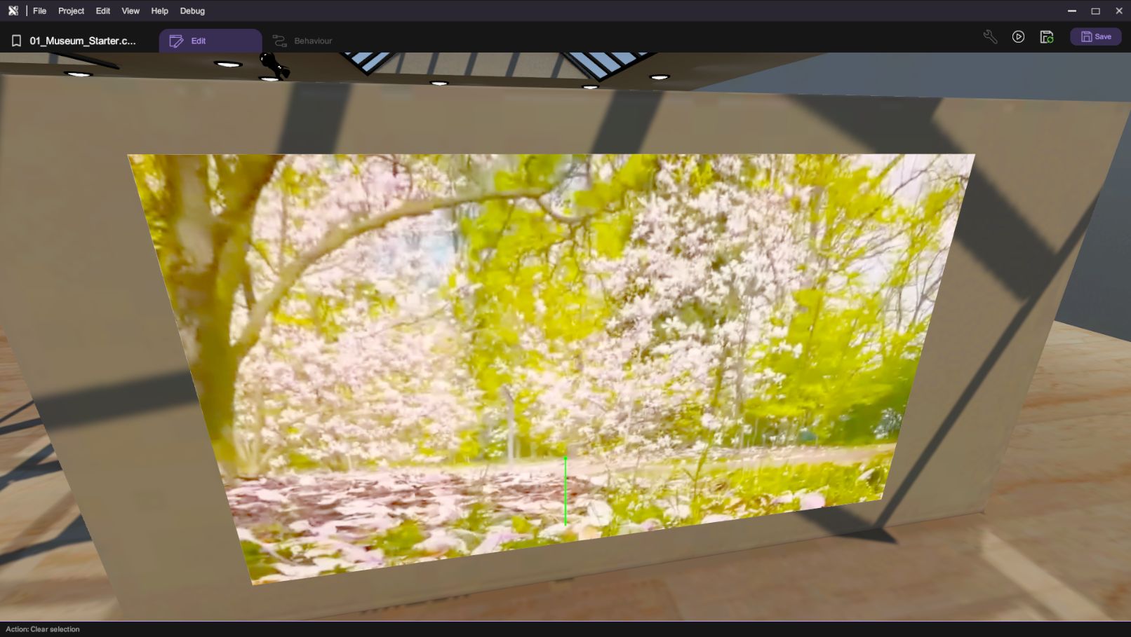 The starter project includes a set of pre-configured 3D models and assets for the museum environment, providing a solid foundation for building the museum scene. Additionally, it features a basic 3D scene object that helps with constructing the scene. Furthermore, the project includes sample audio clips, video clips and animations for character interactions, allowing for a more immersive and engaging experience.