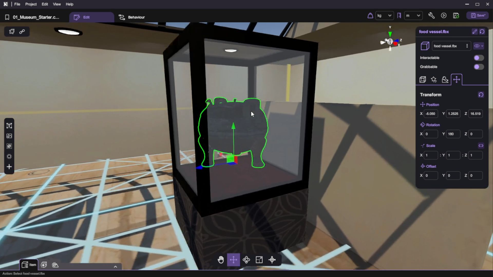 - Repeat the same procedure to add the food vessel 3D model object to the scene and place it inside the display cabinet.