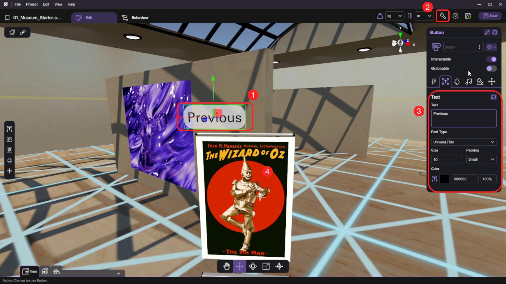 - The player can also interact with special objects in the museum, such as buttons, 2D images, 3D models, and more.