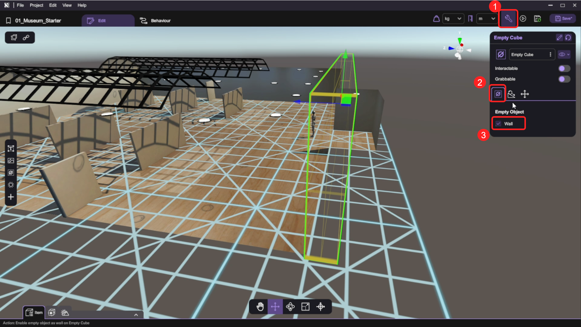 - Open the "Inspector". Then select "Empty Cube" tab to enable "Wall".