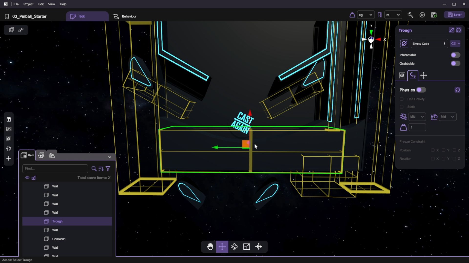 For this tutorial, the starter project will be used to guide you in building the Pinball Machine in a step-by-step manner. All the necessary assets required for the tutorial are already included in the project, so just open the starter project in XRCC and you are ready to go with the tutorial.