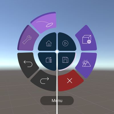 After loading a project, press the Menu button to open the ring-shaped main menu in front of you. The main menu provides buttons to access some features and other menus, which contain more buttons for their respective features. Depending on the mode you are at, you will gain access to a different set of main menu as shown below; more details about the menu buttons will be discussed later.